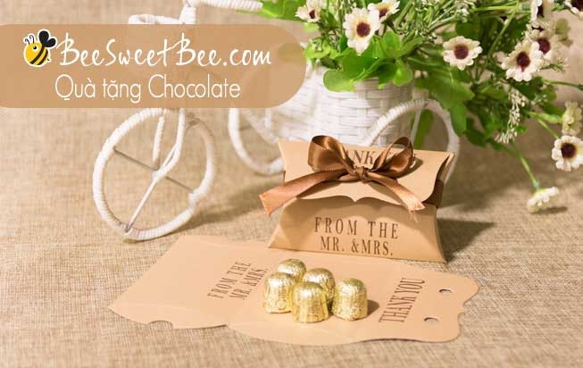 Đây cũng là gợi ý khá hấp dẫn. Chocolate được nhiều cặp đôi mới cưới lựa chọn bởi giá thành phải chăng, thiết kế lại độc đáo với nhiều màu sắc và mẫu mã khác nhau. Tuy nhiên cần đặt mua tại địa chỉ uy tín để chocolate thơm ngon, đúng vị và đạt chuẩn nhé!
