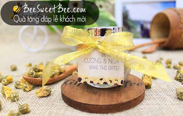 Chọn những hũ mật ong nhỏ xinh làm quà cảm ơn khách mời đang là xu hướng nhiều cặp đôi lựa chọn. Sở dĩ mật ong được chọn là bởi nó mang đến yếu tố mới lạ. Mật ong biểu tượng cho sự ngọt ngào, thay lời cảm ơn của chủ nhân đến khách mời đám cưới. Hơn nữa, đây còn là món quà vô cùng thiết thực vì mật ong rất tốt cho sức khỏe người sử dụng.