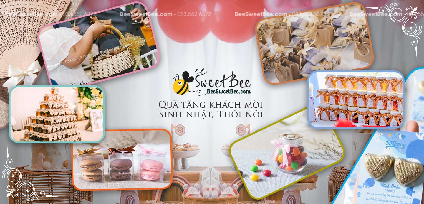 Việc lựa chọn quà tặng cho khách mời tiệc thôi nôi, tiệc sinh nhật phải đảm bảo rất nhiều tiêu chí như quà tặng phải ý nghĩa, an toàn, và đặc biệt phải sang trọng, bắt mắt để thể hiện được sự chu đáo của bạn dành cho khách mời. BeeSweetBee hiểu được tầm quan trọng của su hướng tặng quà cho khách mời sinh nhật, khách mời thôi nôi nên những sản phẩm quà tặng tại BeeSweetBee luôn được trau chuốt, tỉ mỉ chi tiết đến từng cái thắt nơ. hãy tham khảo một số sản phẩm quà tặng tại Bee: