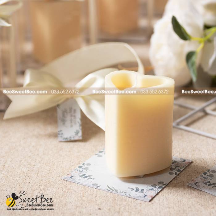 Quà tặng nến trụ hình trái tim cho khách mời tại BeeSweetBee bao gồm: