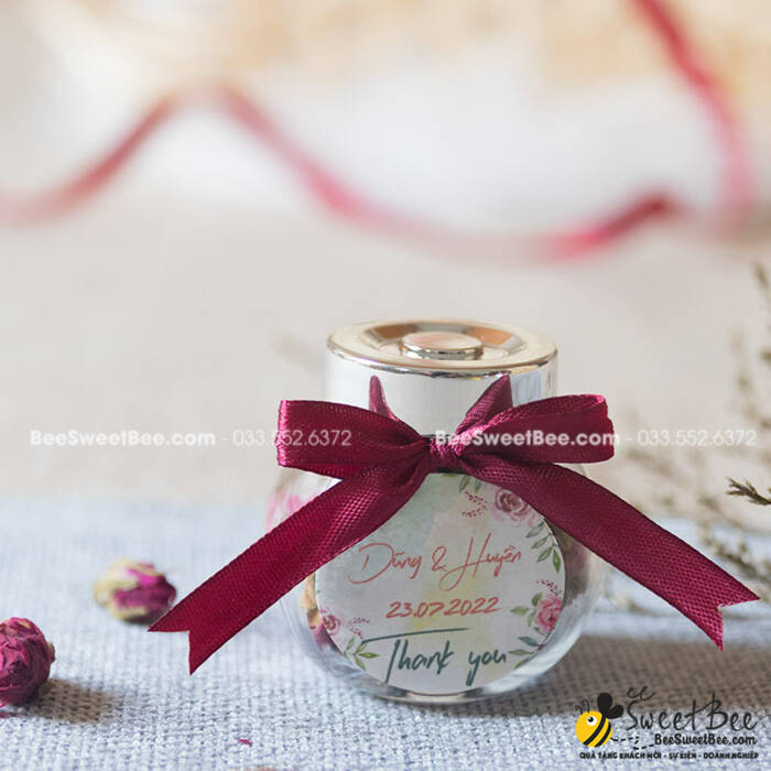 Quà tặng khách mời đám cưới trên bàn tiệc của CDCR Trâm & Jan ngày 23/07/2022