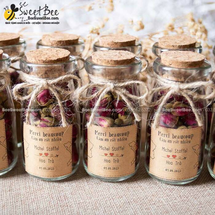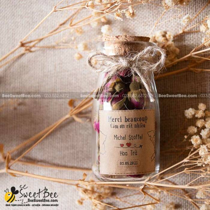 Quà tặng trà hoa cám ơn khách mời đám cưới của CDCR Rob Santler & Trieu Nguyen 21/07/2023