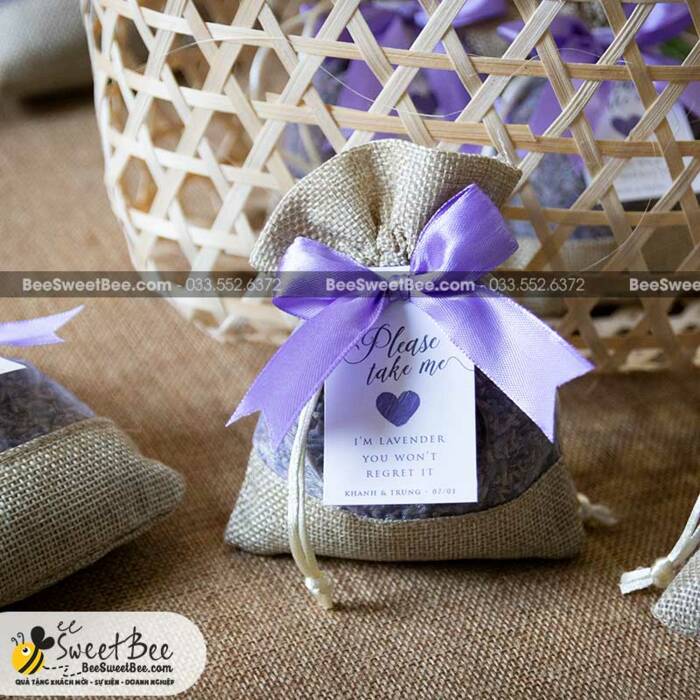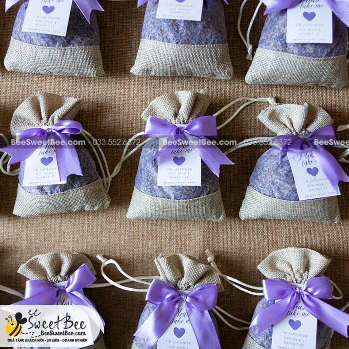 Túi thơm hoa Lavender với mùi hương nhẹ nhàng không chứa hoá chất được khách hàng của Bee lựa chọn để làm quà tặng khách mời đám cưới / khách mời hội nghị, sự kiện.