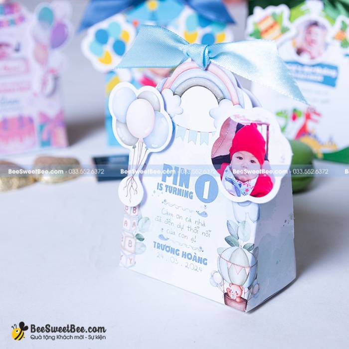 Set quà tặng SweetBee 2 viên chocolate Beatitude tặng khách mời thôi nôi của gia đình bé Trí Hải 06/08/2024