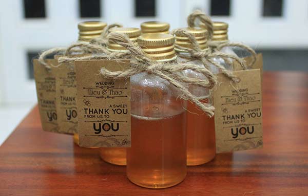 Thứ hai là chọn quà đáp lễ ý nghĩa. Thực tế hiện nay có rất nhiều gợi ý về quà tặng cho khách mời tham dự đám cưới. Tuy nhiên để tạo dấu ấn riêng độc đáo hơn, bạn nên chuẩn bị những món quà nhỏ xinh, ý nghĩa và thiết thực. Thay vì những quyển sổ, kẹo quen thuộc, bạn có thể chọn những hũ mật ong, trà hoa khô hay hộp socola vô cùng mới lạ và hữu ích.